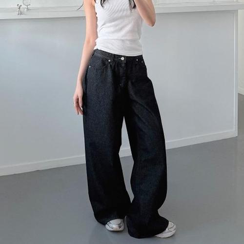[다잇템][다잇템] 여자 백포켓 MAXI 와이드핏 논페이드 검정데님 데님팬츠_24742582_588872