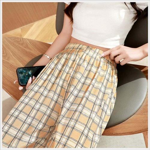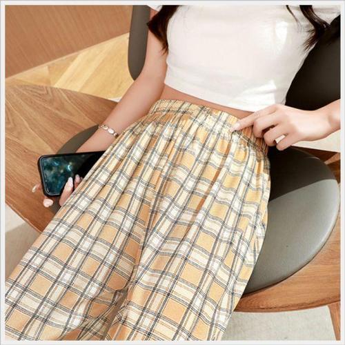 [셀럽하우스]여자 BCCZ4793 단가라 일자 팬츠 허리밴딩 여름바지 통바지 2색