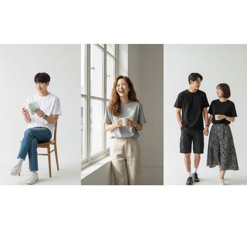 [8종 1세트] 남여공용 라운드/브이넥/카라넥 면 티셔츠