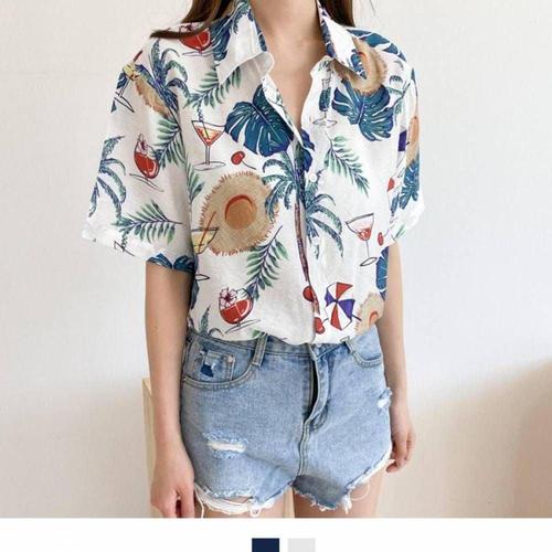 [셀러허브_여성트랜드패션]루즈한 비치반팔티셔츠 하와이안셔츠
