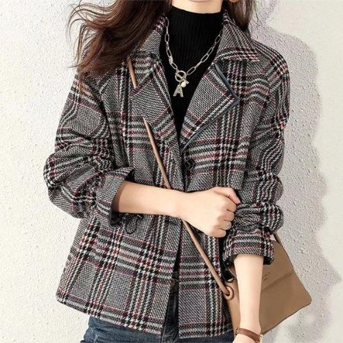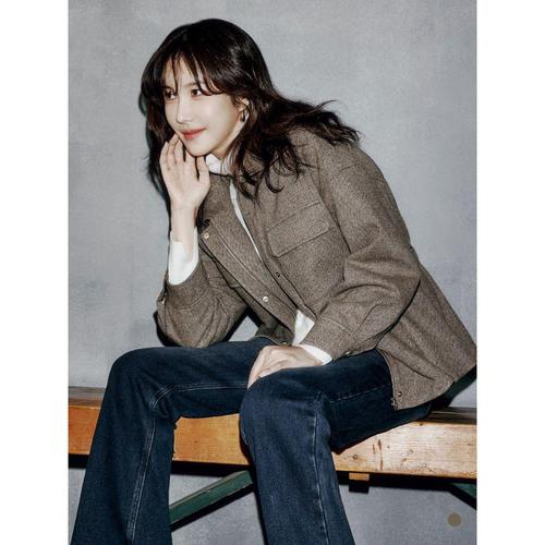 여성용 로베 울혼방 헤링본 모직 싱글 자켓