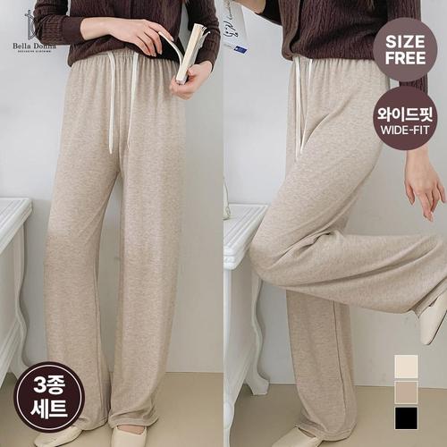 3종세트 벨라도나 여성 가을 편안한 니트 밴딩팬츠 캐주얼 와이드 바지 BLN25_P257s3