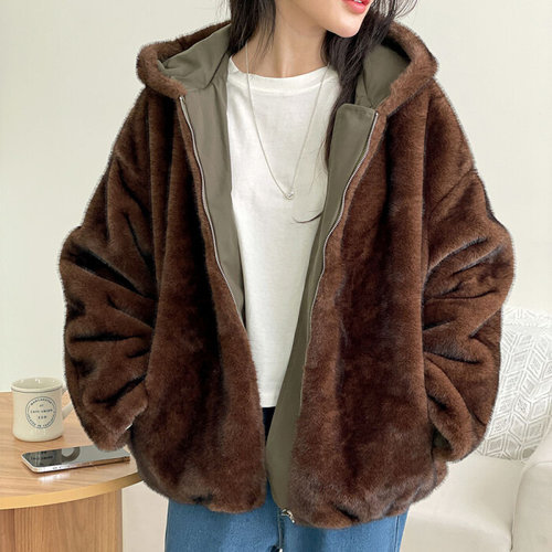 에르디테 / 리버시블 양면 밍크 퍼 털 루즈핏 후드 숏 사파리 패딩 점퍼 2컬러