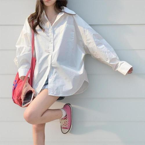 오버핏 롱셔츠 블라우스 긴팔 베이직 화이트 남방