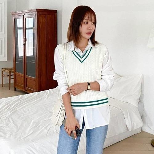 [브이와이][VY] 여자 흰남방 레이어드룩 세트_CD8585_18930493_588847