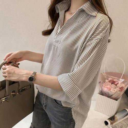 [오너클랜]인기상품 캐주얼 여성 베이직 7부 스트라이프 셔츠 블라우스 [WA14BDA_250917]