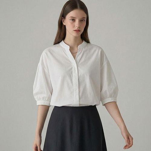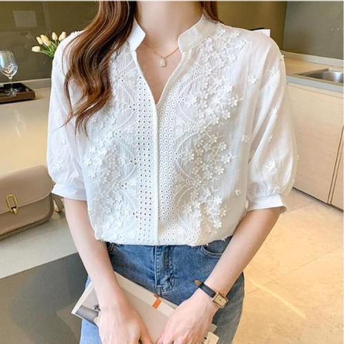 [오너클랜]인기상품 여자 v넥 얇은 7부 차이나넥 펀칭 자수 블라우스 셔츠 [WDDEE76_250917]