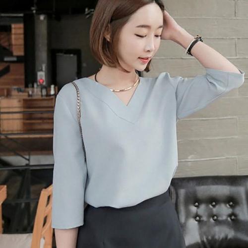 [오너클랜]인기상품 7부 브이넥 블라우스 데일리 캐주얼 여자 셔츠 [WFD6BB6_250917]