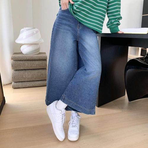 [옷자락] 여자 코튼 진청 하이웨스트 와이드 9부 데님