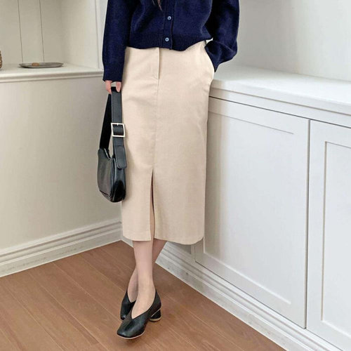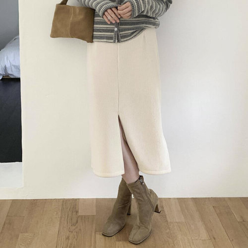 여성 따뜻한 기모 스판 뒷트임 H라인 골덴 롱 스커트 핏이 예쁜 코듀로이 치마