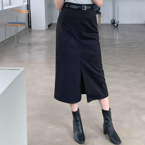 옷자락 / 여자 레이온 스판 벨티드 트임 h라인 모직 롱 스커트
