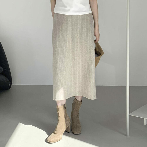 옷자락 / 여자 모직 탄탄 줄지 h라인 트임 롱 스커트