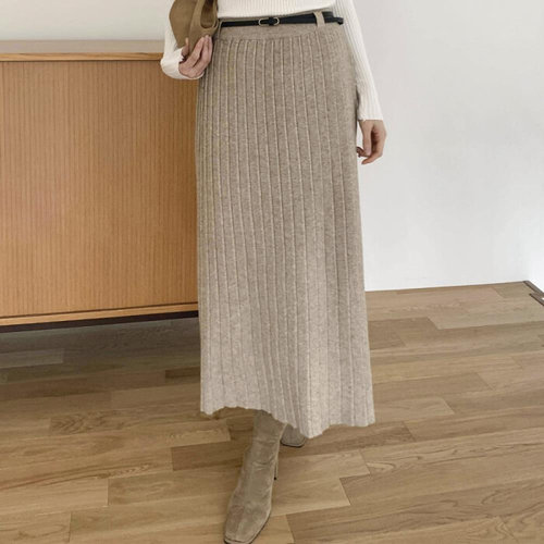 옷자락 / 여성 심플 h라인 벨티드 골지 니트 롱 스커트