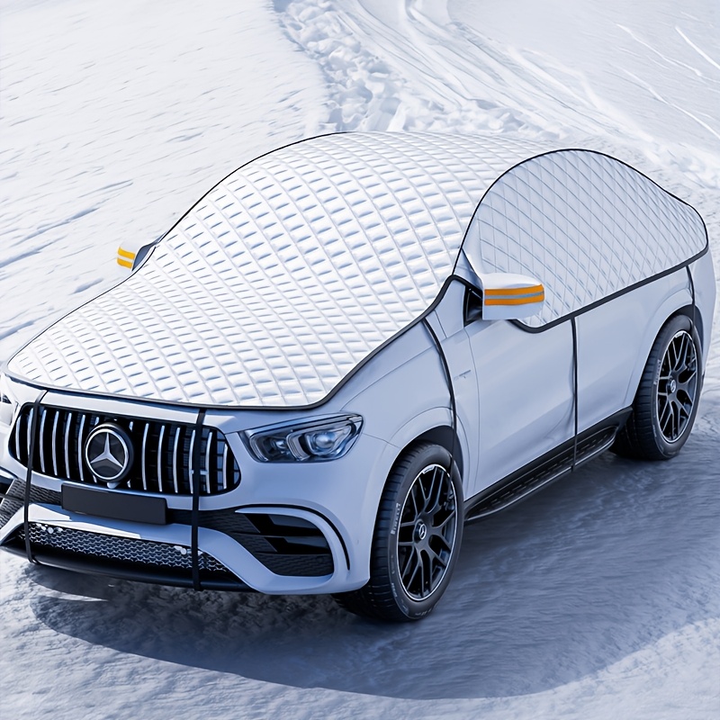 TEMU 1PC 사계절 범용 멀티기능 대형 자동차 커버, 눈방지 및 우박방지, 간편 설치 및 보관, 야간 가시성을 위한 반사 스트립 포함, 모든 차종에 적합한 내구성 있는 윈드실드 보호 커버