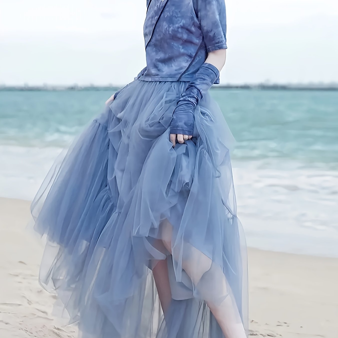 TEMU 여성용 우아한 A라인 맥시 머메이드 숏-투-레그 점프 드레스 - 와이드 A라인 실루엣, 루즈핏 - 웨딩, 파티, 이벤트용 (벨트 미포함) - 세탁기 사용 가능한 솔리드 컬러 사계절 정장