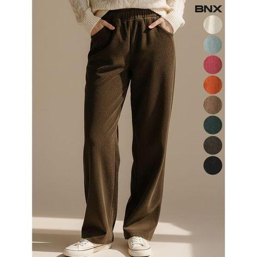 DDO 여성 겨울 기모 바지 융털 코듀로이 밴딩 일자 팬츠 데일리룩