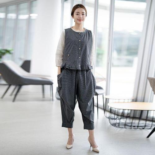 더그랜 여성 봄 여름 쿨 밴딩 팬츠 가벼운 린넨 슬랙스 바지 2종 세트
