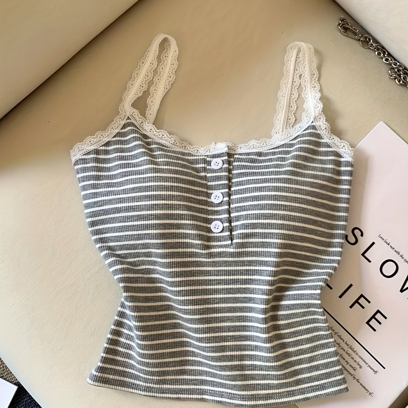 TEMU 여아용 레ース 트림 버튼업 캐미솔 탑 1개, 탈부착 불가 패드 컵 내장형, 아우터웨어용으로 편안하고 활용도 높은 십대용