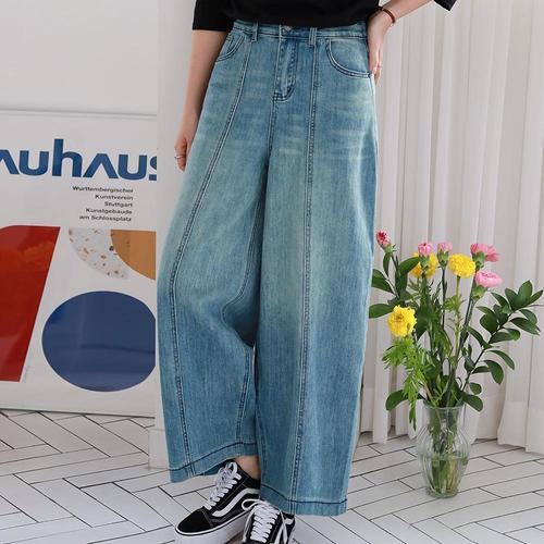 코모도 여성 와이드 청바지 절개 라인 롱 데님 팬츠 ( 2단기장 )