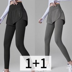 CBHV 여성 일체형 레깅스 운동 9부 레이어드 포켓 하이웨스트 긴바지 1+1