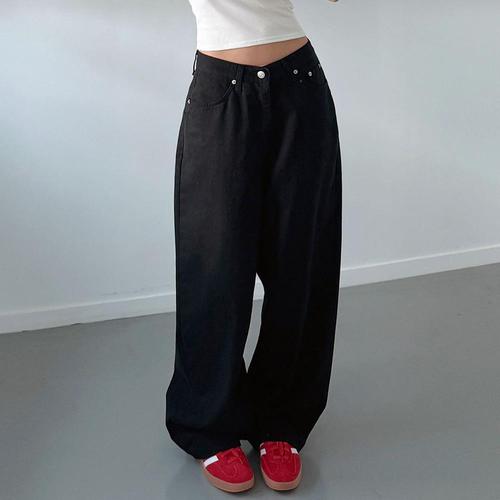[옷자락] 여자 로우라이즈 백비죠 맥시 와이드핏 리벳 면바지