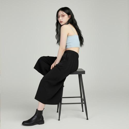 여자세미일자바지 여자 봄여름 밴딩팬츠 마바지 스판 고무줄 일자바지