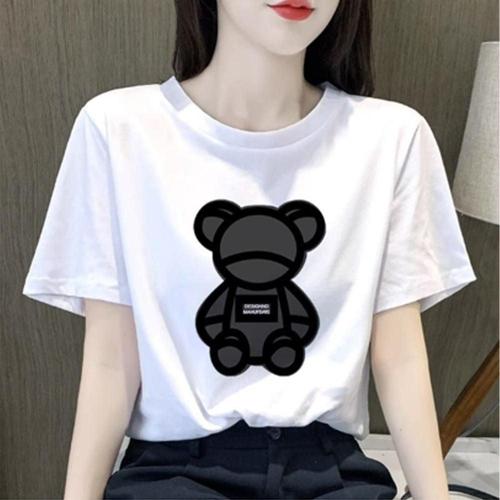 반팔티 곰돌이 프린팅 티셔츠 여성 무지티 여름 오버 WFIPMN7