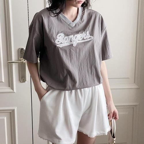 [다잇템]여자 바람막이 빅레터링 V넥 반소매 맨투맨 (32959132A)