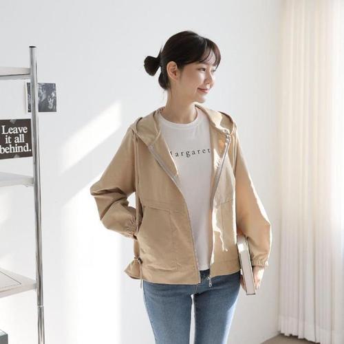 [다잇템]여자 바람막이 미색 다크 봄후드점퍼 집업_3 (43168002A)