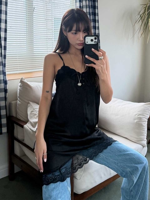 [유센틱] [유미 PICK] 레이스업 슬립 원피스 블랙 AW6MO47110