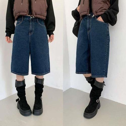 [옷자락] 여자 가을 버뮤다데님 박시 와이드 워싱 면 청반바지
