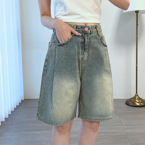 [다잇템]여자 와이드핏 워싱 버뮤다데님 FW 청반바지