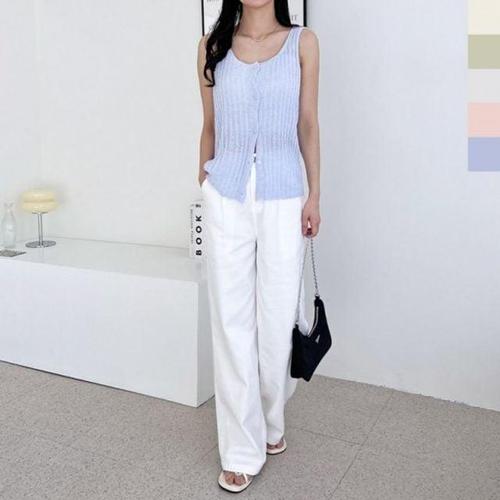 니트티 버튼민소매니트 여름나시티 슬리브리스 여 WFLMF7I