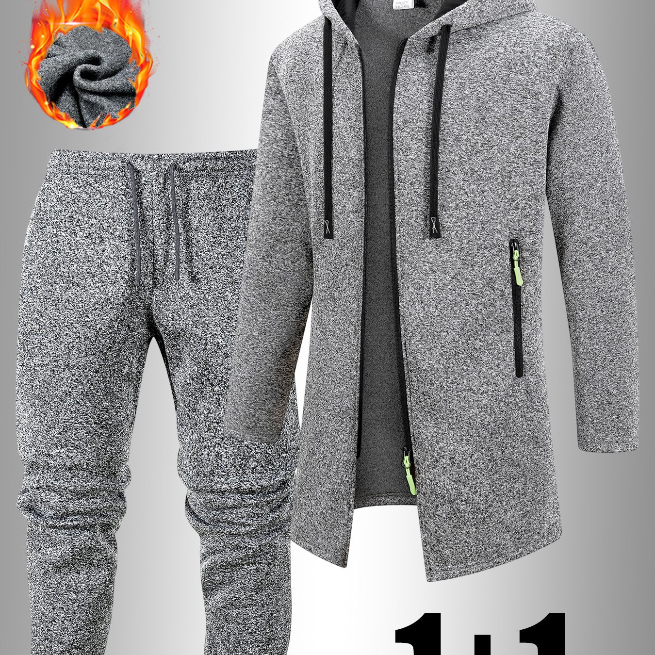 TEMU 남성 캐주얼 스포츠 의상, 드로스트링과 지퍼가 있는 긴 후드 재킷과 테이퍼드 팬츠 (허리 주머니 및 드로스트링 포함)로 구성된 세련된 투피스 세트