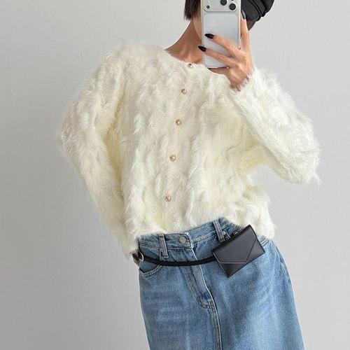 옷자락 / 여자 연말룩 금장버튼 라운드 겨울 깃털 퍼 자켓