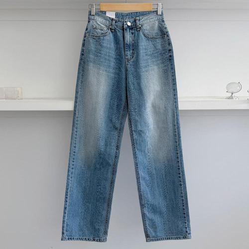 [옷자락] 여성 연청 스트레이트 일상 캐주얼 워싱 면 기본 청바지