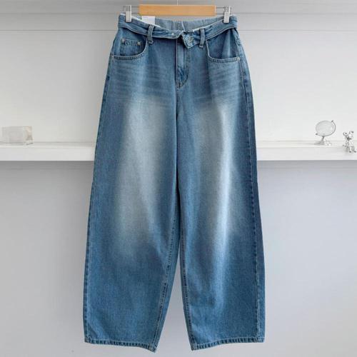 [옷자락] 여성 롤업 로우라이즈 연청 맥시 와이드핏 워싱 데님팬츠