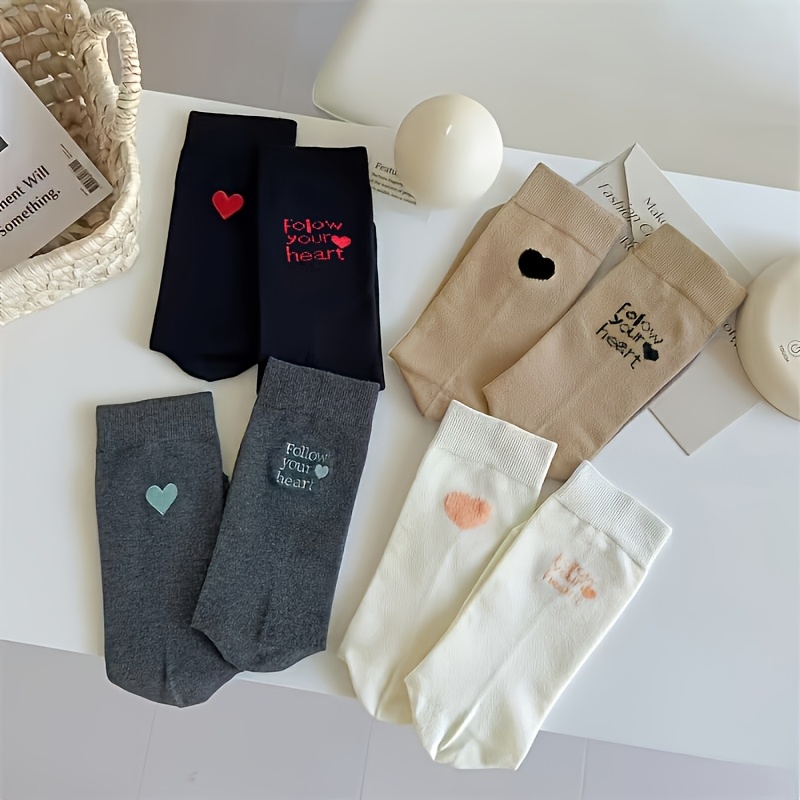 TEMU 여성용 겨울 따뜻한 중간 길이 양말 4켤레 - 두꺼운 골지 디자인과 탄성 있는 가장자리가 특징이며 다양한 색상으로 제공되며 캐주얼하고 포멀한 의상 모두에 적합합니다.