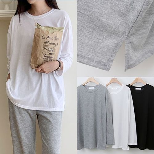 여자상의 무지 긴팔티셔츠 옆트임 루즈핏 캐주얼룩
