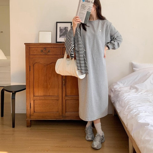 플러리싱 / 빅사이즈 펜던트 나그랑 옆트임 맨투맨 롱원피스 플