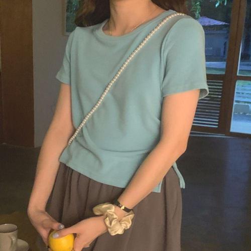 여자 옆 셔링 트임 반팔 라운드넥 티셔츠 반팔티 심플 WEEA205