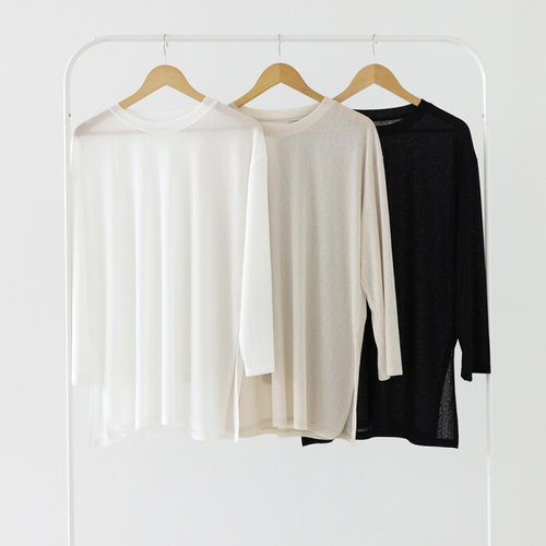 [트리아나]옆트임 루즈핏 반목 니트 티셔츠 AI4TA21_GR