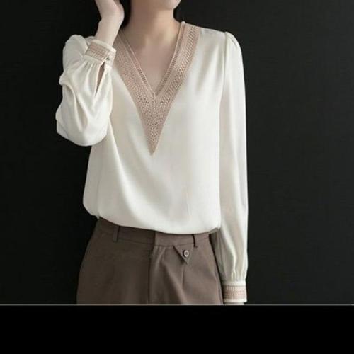 [엄지척]봄 여성 브이넥 가을 긴팔 예쁜 블라우스 화이트 레이_19651789_667501