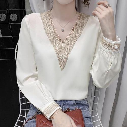 [엄지척]레이스 브이넥 펀칭 여성 긴팔 봄 가을 예쁜 블라우스_19650349_667501