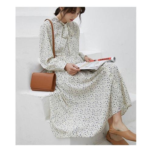 [오너클랜]인기상품 봄 가을 여성 예쁜 플라워 넥 리본 긴팔 롱원피스 [WE5DDC5_250915]