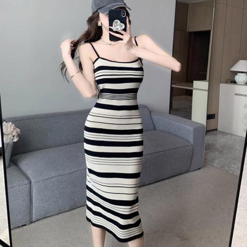[오너클랜]인기상품 여자 끈나시 다양한 라인 포인트 예쁜 니트 롱원피스 [WE7788E_250916]