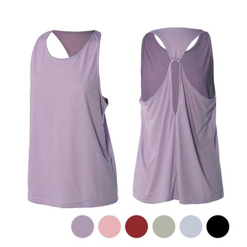 여성용 미포 운동 상의 크롭 백 민소매 탱크 운동복 요가 셔츠 루즈핏