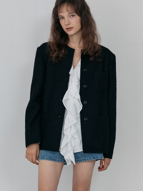 [피제이 스튜디오] 오드 트위드 자켓_블랙