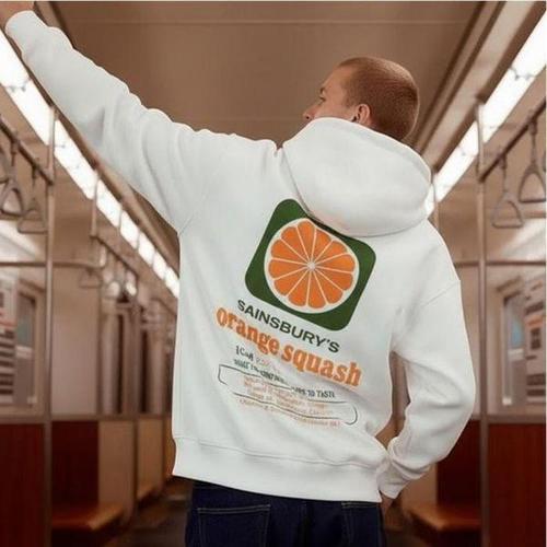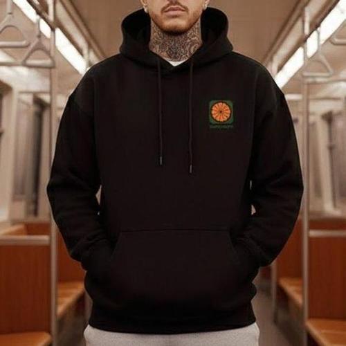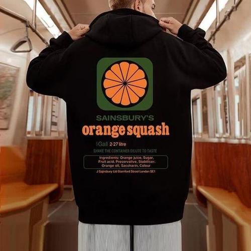 [HYIJSQ0U_4B]기모 오렌지 프린팅 후드티 남자 후드 티셔츠