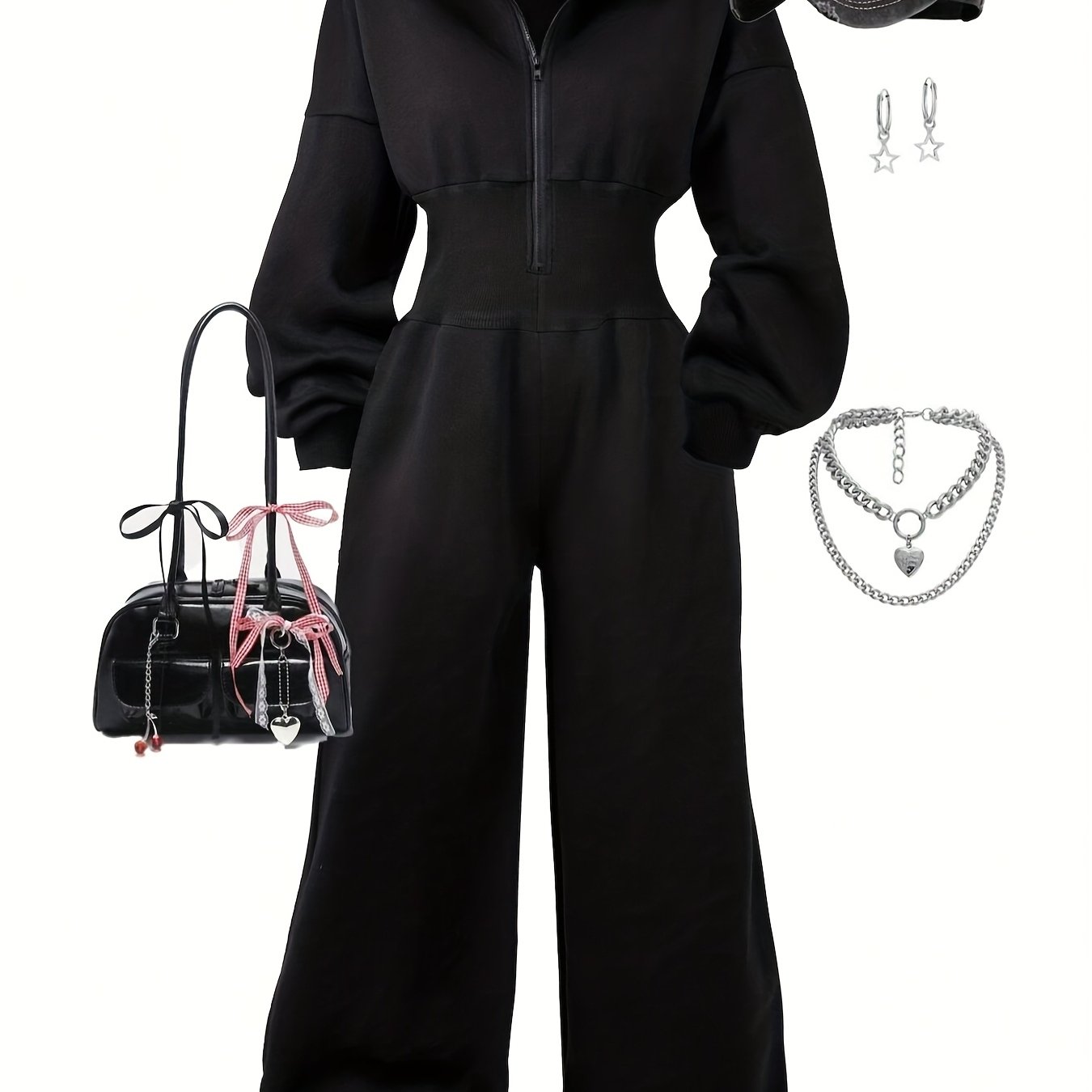 TEMU 여성 점프수트, 후드가 있는 지퍼업 후드티, 하이웨이스트 바지